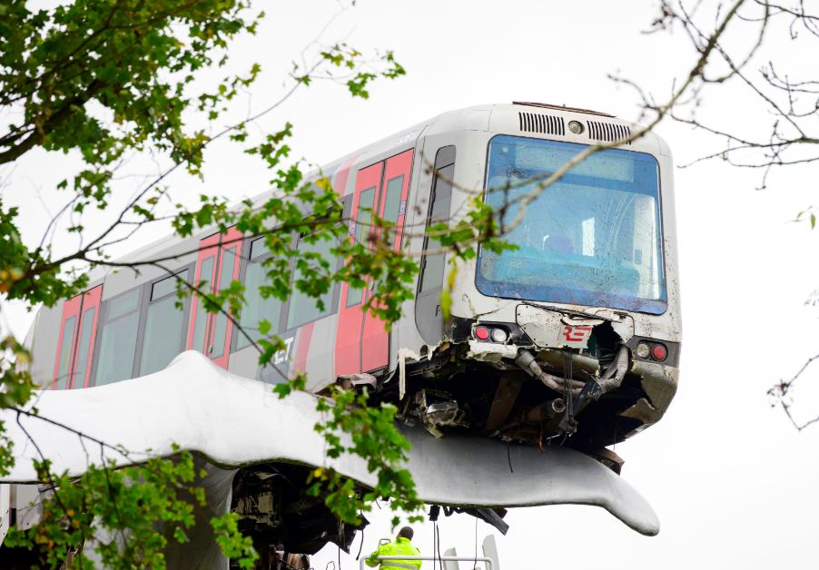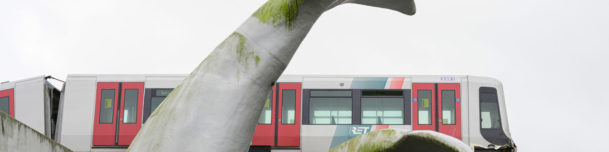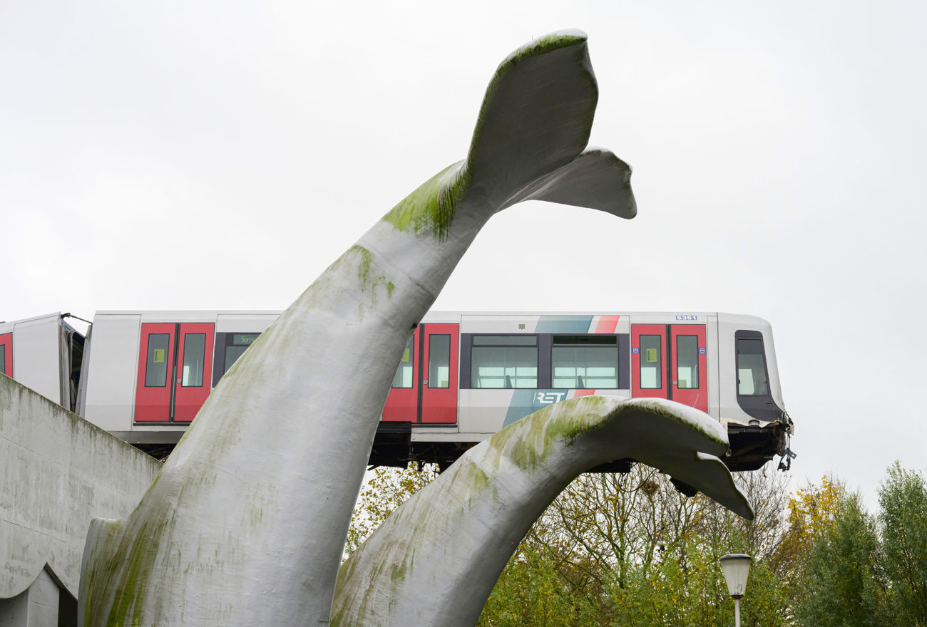 Een metrovoertuig is in de nacht van zondag op maandag 2 november in Spijkenisse bij het inrukken doorgeschoten en beland op een kunstwerk bestaande uit twee walvisstaarten. Tot onze opluchting is de metrobestuurder ongedeerd het voertuig uitgekomen. Hij maakt het naar omstandigheden goed. Er waren geen passagiers aanwezig.