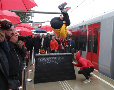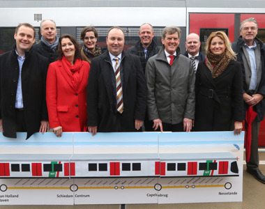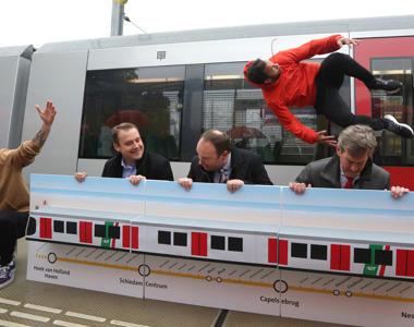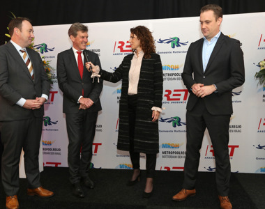 Vandaag openden Arjan van Gils, wethouder van de gemeente Rotterdam, Marc Rosier, portefeuillehouder OV-ontwikkeling van de Metropoolregio Rotterdam Den Haag (MRDH), en Maurice Unck, algemeen directeur van de RET, de verlengde metrolijn B tussen Schiedam Centrum en Hoek van Holland Haven. De opstartfase die vanaf 30 september gold, is hiermee ten einde: ‘Vanaf de eerste dag is gretig gebruik gemaakt van de metro. We tellen op weekdagen gemiddeld ruim 24.000 in- en uitstappers, en tellen al 700.000 in- en uitcheckers sinds de start’, aldus Maurice Unck.